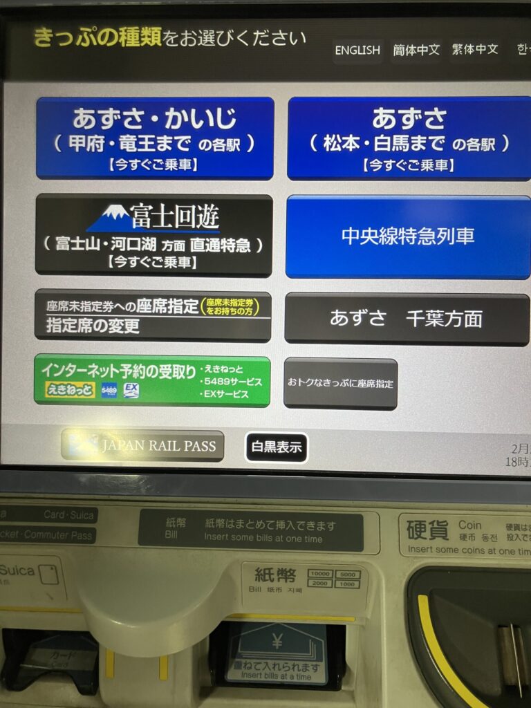 特急あずさのチケットを駅の指定席券売機で買う