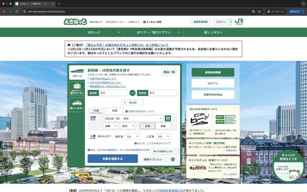 1,えきねっとのトップページへ行く