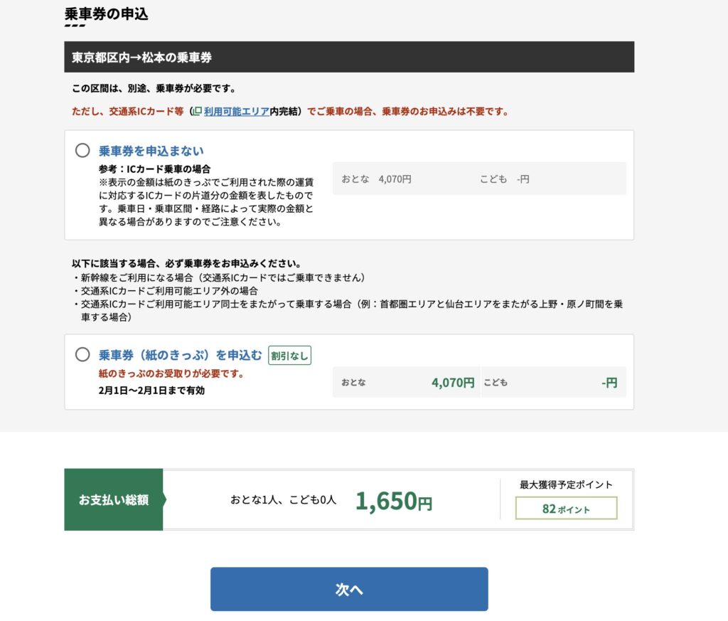 ※紙の乗車券を申し込んだ場合は、発券可能な駅でその切符を受け取る必要があるので要注意です。
