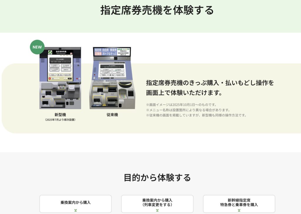 駅の指定席券売機での買い方は、【JR東日本公式サイト】にて実際の画面を見ながら体験することができます。