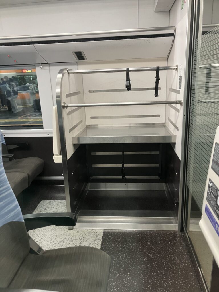 大きめの荷物の方は、「荷物置き場がある号車」を選び、席は置き場から近すぎない1〜2列離れた場所が個人的にはおすすめです(真横は人の出入りも多く落ち着かないことがあるため)