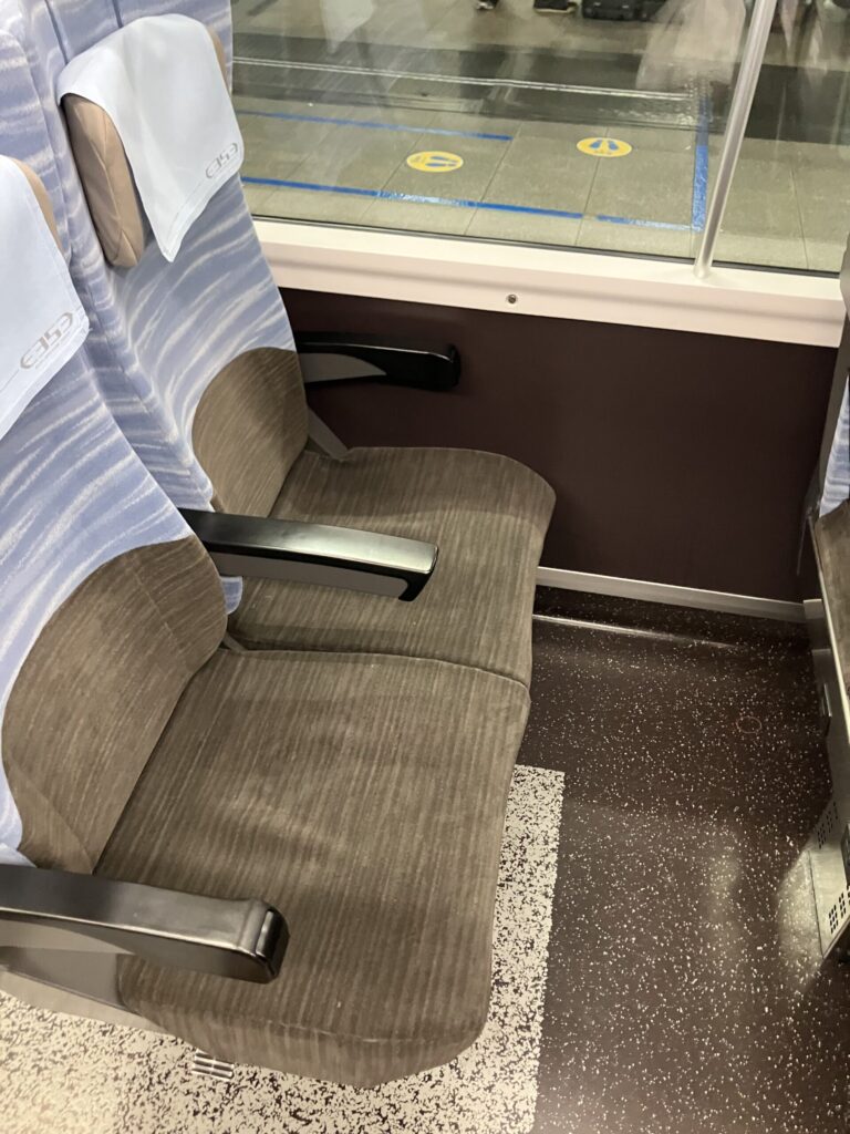 座席配置は、グリーン車も基本は2+2配列(通路を挟んで2席+2席)となっています。