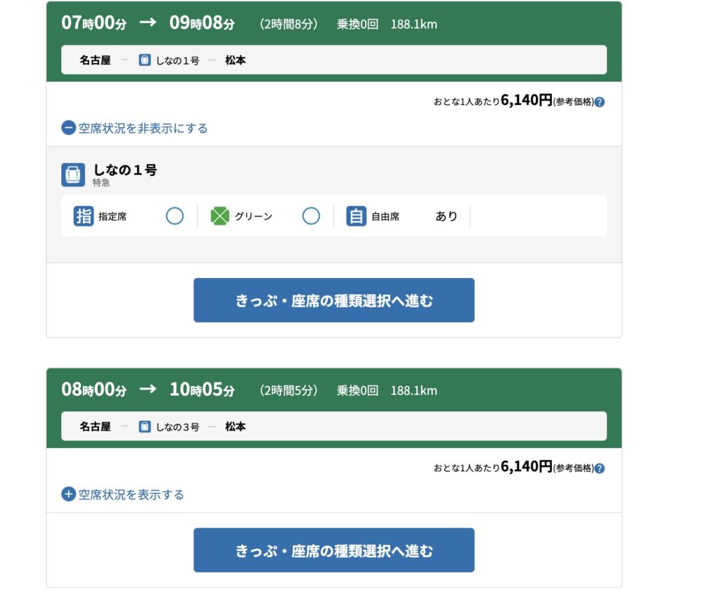 特急しなのに比較しても1000円以上は安く移動できる計算となっています。